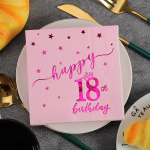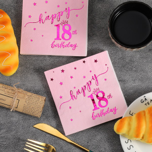 HappyBirthday ピンク ナプキン ホットスタンピング 1歳の誕生日 ライト ラグジュアリー パーティー パーティー 使い捨てペーパータオル
