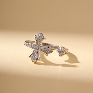 ライトラグジュアリークロスシェイプマイクロスタッズジルコニウムオープンリングファッショナブルな調節可能なデザインリング新しい人差し指リング