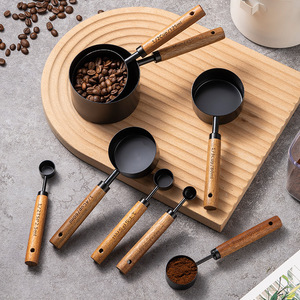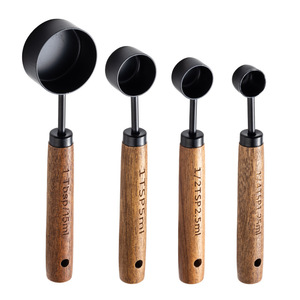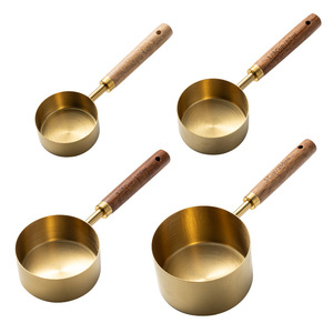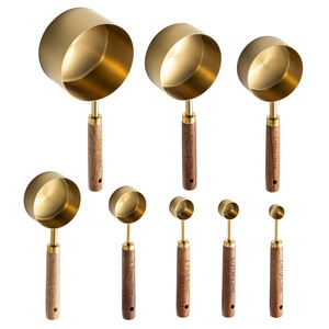 金メッキステンレス計量スプーン8点セット目盛付き計量スプーン胡桃木柄計量スプーン焙煎用具