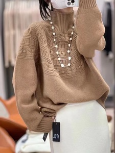 Puyuan Production Factory は、サンプルと図面に基づいて少量のカスタマイズされた新しいハイネック ラグランスリーブ ウール ニット セーターを生産しています。