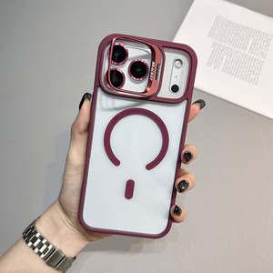 iPhone17用レンズスタンド付き磁気吸着スマホケース、レンズフィルム付き、15完全保護、落下防止、1314保護カバー