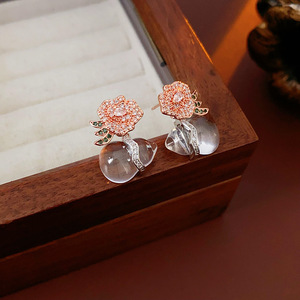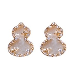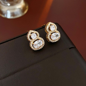 16#ゴールド 18K リアルゴールド電気メッキシルバー針ジルコンひょうたんスタッドピアス