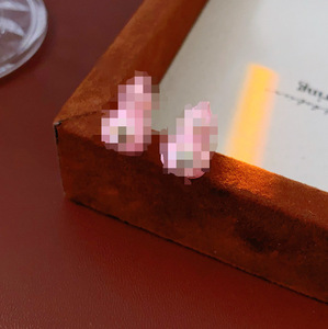 19#ピンクシルバー針オイルドロップダイヤモンドクロスフラワーひょうたんスタッドピアス