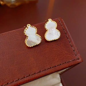 1#ゴールド 14K リアルゴールド電気メッキシルバー針ひょうたんマザーオブパールスタッドピアス