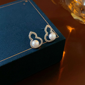 新しい中国風の国潮ひょうたんパールイヤリング、ファッショナブルな通勤、多用途の軽い高級イヤリング、気質、ハイエンドのレトロなイヤリング