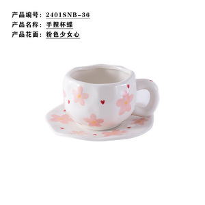 手作りカップ皿韓国式ins風手描き手つまみ不規則陶磁器カップ皿デザート皿高顔コーヒーカップ