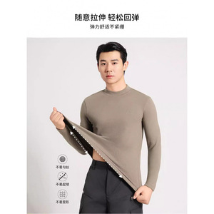 秋冬両面ドイツベルベットハーフタートルネック弾性暖かい厚みのあるトップミッドカラー刺繍メンズボトリングシャツ 2575