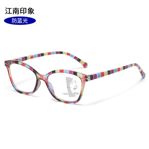 新型越境ファッションストライプ防ブルーライト多焦点老眼鏡女性ハイビジョン読書鏡優雅老眼鏡男