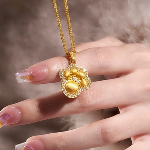サンドゴールドジュエリーニッチハイエンドかわいい子猫の爪ネックレス女性のブラッシュドダイヤモンドペンダントライト高級鎖骨チェーン卸売