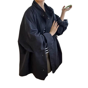 韓国シックな春と秋のレトロな薄い怠惰なスタイルのスタンドカラールーズカジュアル長袖ミッドレングスウインドブレーカージャケット女性の冬