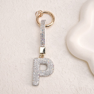 クロスボーダー満ドリルの英語のアルファベットのキーホルダーの多種の色のアルファベットのペンダントの自動車のキーホルダーのペンダント