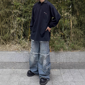 高バージョンB 25ss初春シリーズチェック柄襟おしゃれシンプル万能男女兼用ゆったり長袖ポロシャツ