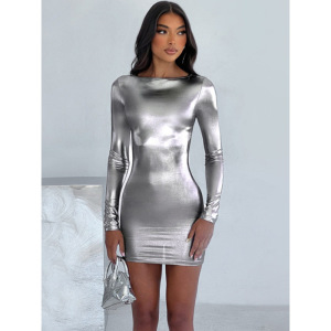 Slim fitting round neck long sleeved dress修身圆领长袖连衣裙