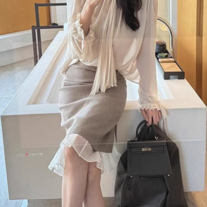 法式名媛春装2025新款高端设计感中长半身裙法式西装花边包臀裙女