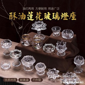 仏前灯、酥油ランプホルダー、蓮ガラスキャンドルホルダー、オイルランプ、24時間常夜灯
