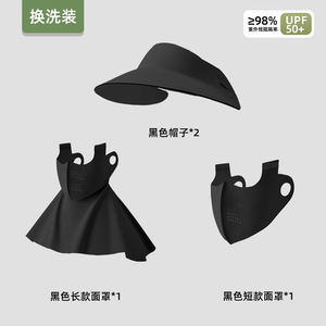 【日よけ帽子+ロングマスク+ショートマスク】ブラック UPF50+