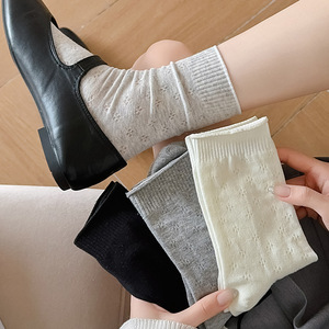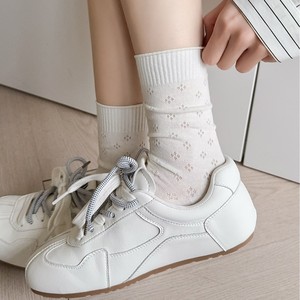 骨なし春夏ソックス レディース ミドル丈ソックス 夏用薄手ソックス クリームホワイト メッシュソックス 綿ソックス インス風白ソックス 諸曁