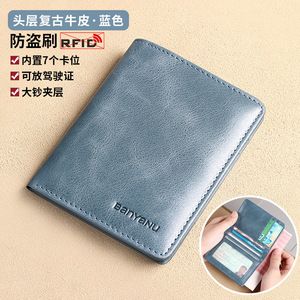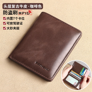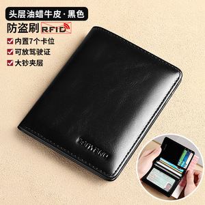 クロスボーダー広州革工場財布メンズ本革縦型超薄型第一層牛革シンプルショート運転免許証カードホルダー