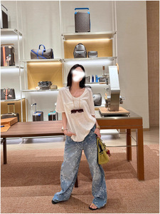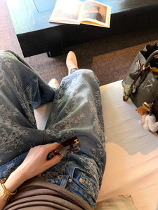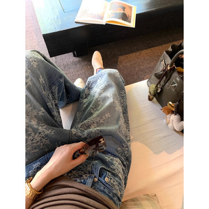 Ouyang 刺繍ジーンズ女性の夏のルーズワイドレッグパンツレトロストレートパンツフロアレングスパンツ