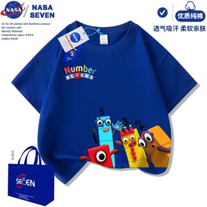 NASA デジタルビルディングブロック服子供半袖夏の漫画綿 Tシャツ男の子と女の子のトップス中大子供用半袖