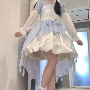小魔女lolita正版洛丽塔夏长短袖连衣裙op小个子花苞裙甜美软妹女