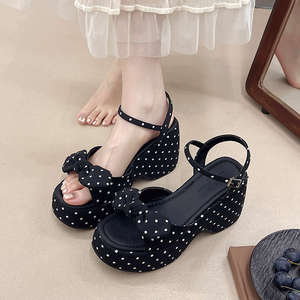 女性用の小さな厚底ウェッジサンダル、2025年の新しい夏スタイル、スカート付き、フランス風の美しいハイヒール、疲れにくい