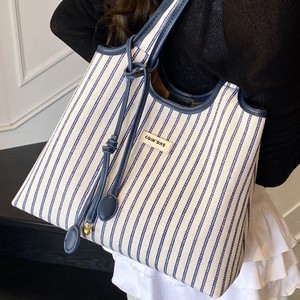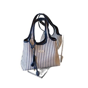 カジュアル大容量ストライプキャンバスバッグレディース2025新作百合シングルショルダーバッグ軽やかファッショントートバケツバッグ