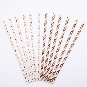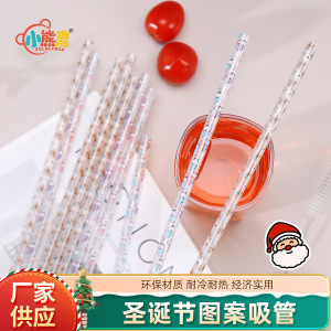 スポット卸売クリスマスプリントストローカラフルなストロー環境に優しいクリエイティブリサイクル可能なプラスチックストロー