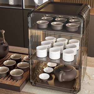 防塵カップ収納ラック、軽くて豪華で見栄えが良く、積み重ね可能な透明なリビングルームオフィスデスクトップキャビネットカップホルダー