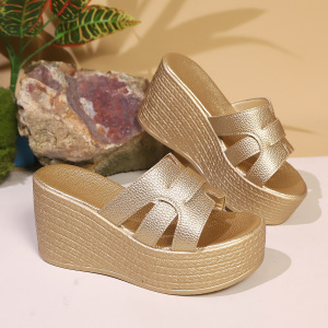 2025新款小个子坡跟拖鞋夏季欧美露趾厚底镂空一字凉拖鞋女34-43