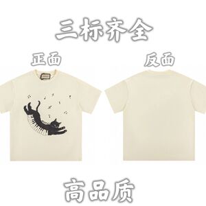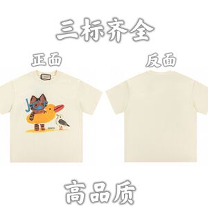 2025夏のファッションブランドの新型純綿丸首半袖tシャツ漫画のアルファベットのプリントはカジュアルでゆったりしています。