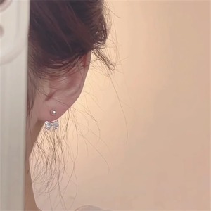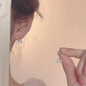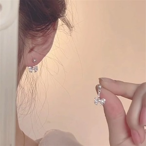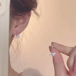 女性用S925シルバーニードルイヤリング、甘いジルコンリボンバックハンギングイヤリング、ニッチで超キラキラユニークなイヤリング、ハイエンド
