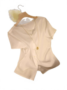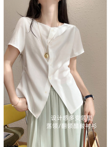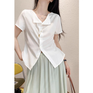 可変襟型酢酸上着は腰を収めてやせている襟のシャツの白い涼しくて薄い半袖の夏の新しいG051230を現します。
