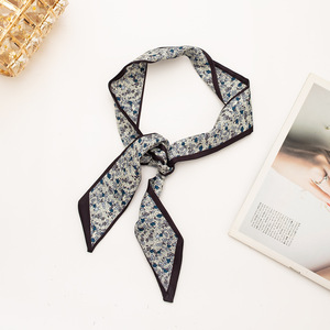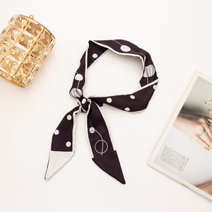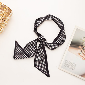 高級女性用ロングシルクスカーフ、ヘアターバン、リボン、かわいい卸売ホワイトハンドルヘアバンド、小さなロングストリップ
