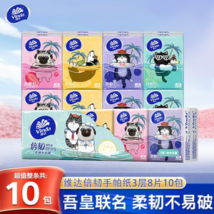 Vinda ハンカチ紙 ドーパミン 無香料 3 層 8 枚の小さなパックのペーパータオル ポータブル フェイシャル ティッシュ ナプキン 10 パック/枚