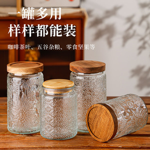 批发新款复古海棠花玻璃密封罐糖果零食储物罐干果坚果储存罐