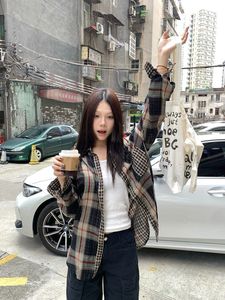 甘くてクールなシックなスタイルのコントラストチェック柄スプライシングシャツ女性のための 2025 初秋カジュアルルーズ日焼け止めジャケット長袖トップ