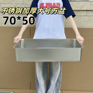 304ステンレス角盆長方形角盤業務用平底方盆食堂盛菜盆70*50特大猫砂盆