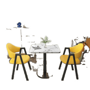 模造白石テーブルトップ + 黒と黄色の革張りの椅子
