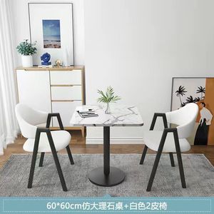 模造白石テーブルトップ + ライトグレー革張り椅子