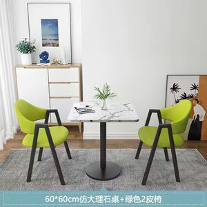 模造白石テーブルトップ + フルーツグリーンレザーチェア