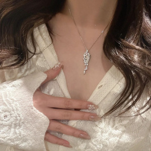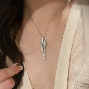 中古フラッシュシルバーつや消し砂時計ペンダントネックレスクールウォータードロップタッセルジルコン鎖骨チェーンライト高級アクセサリー