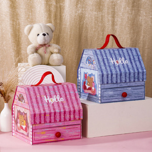 创意儿童节礼盒房子曲奇饼干双层包装盒空盒宝宝满月生日礼物盒
