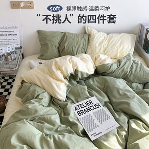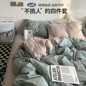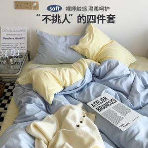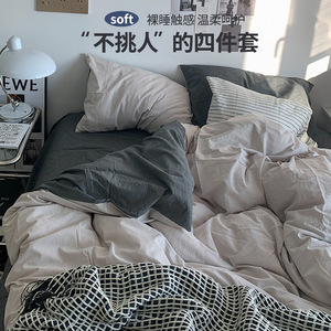 寝具4点セット ボックスシーツタイプ 学生寮 洗える綿シーツ 掛け布団カバー 掛け布団カバー4点セット