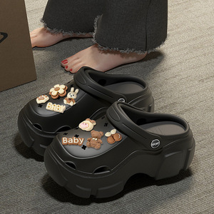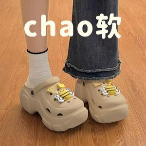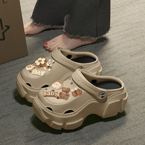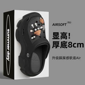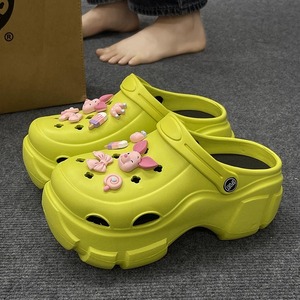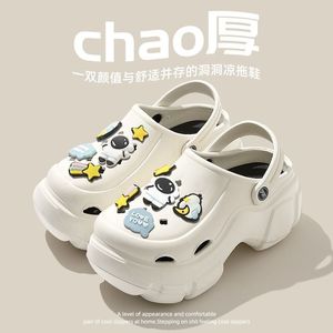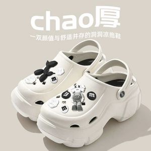 Xiaohongshuの人気の女性用下駄、2025年夏の新しいアウターウェア、インターネットセレブのファッショナブルな厚底ビーチつま先スリッパ