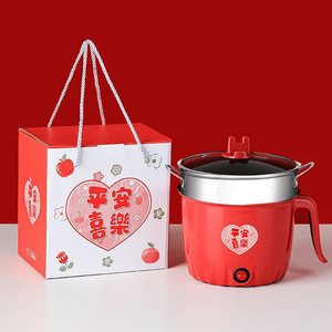 新年赤折りたたみハンドル電気調理鍋 + ステンレス鋼蒸し器ギフトボックス付き