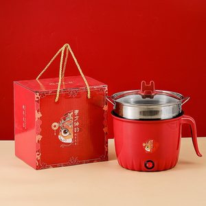 新年の赤い折りたたみハンドル電気調理鍋、ギフトボックス付き