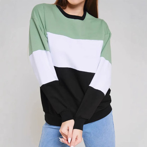 クロスボーダーロシア2025婦人服ストライプ衝突色百合上着カジュアル丸首ゆるいプルオーバー