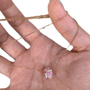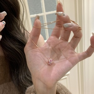 ヴィンテージ中古ピンクジルコンフルダイヤモンドパスパスネックレスレディースニッチライトラグジュアリーハイエンド気質多用途鎖骨チェーン