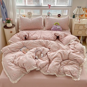 新型雲感木綿シワ二重糸綿レース四点セットフランス少女心セット生放送